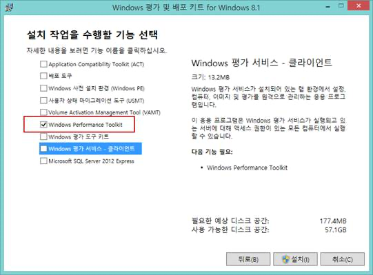 배포 키트를 설치 하는 아래 화면에서 Windows performance tool kit만 선택 한 후 설치 하시면 됩니다.